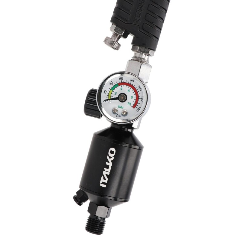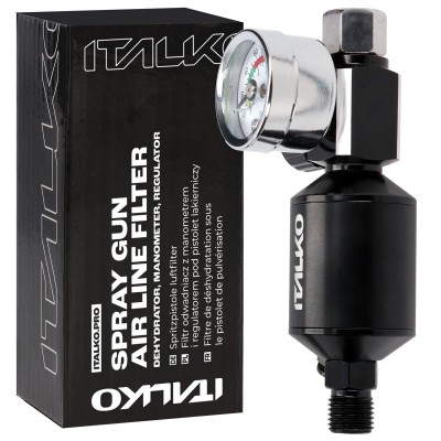 Profesionalus ITALKO oro reguliatorius – nepakeičiamas kiekvieno dažytojo įrankis, siekiant stabilių darbo parametrų ir tobulos dažymo kokybės. Į vieną kompaktišką įrenginį sujungti: filtras, drėgmės atskirtuvas ir tikslus slėgio reguliatorius, užtikrinantys švarų ir sausą orą, tiekiamą tiesiai į dažymo pistoletą.